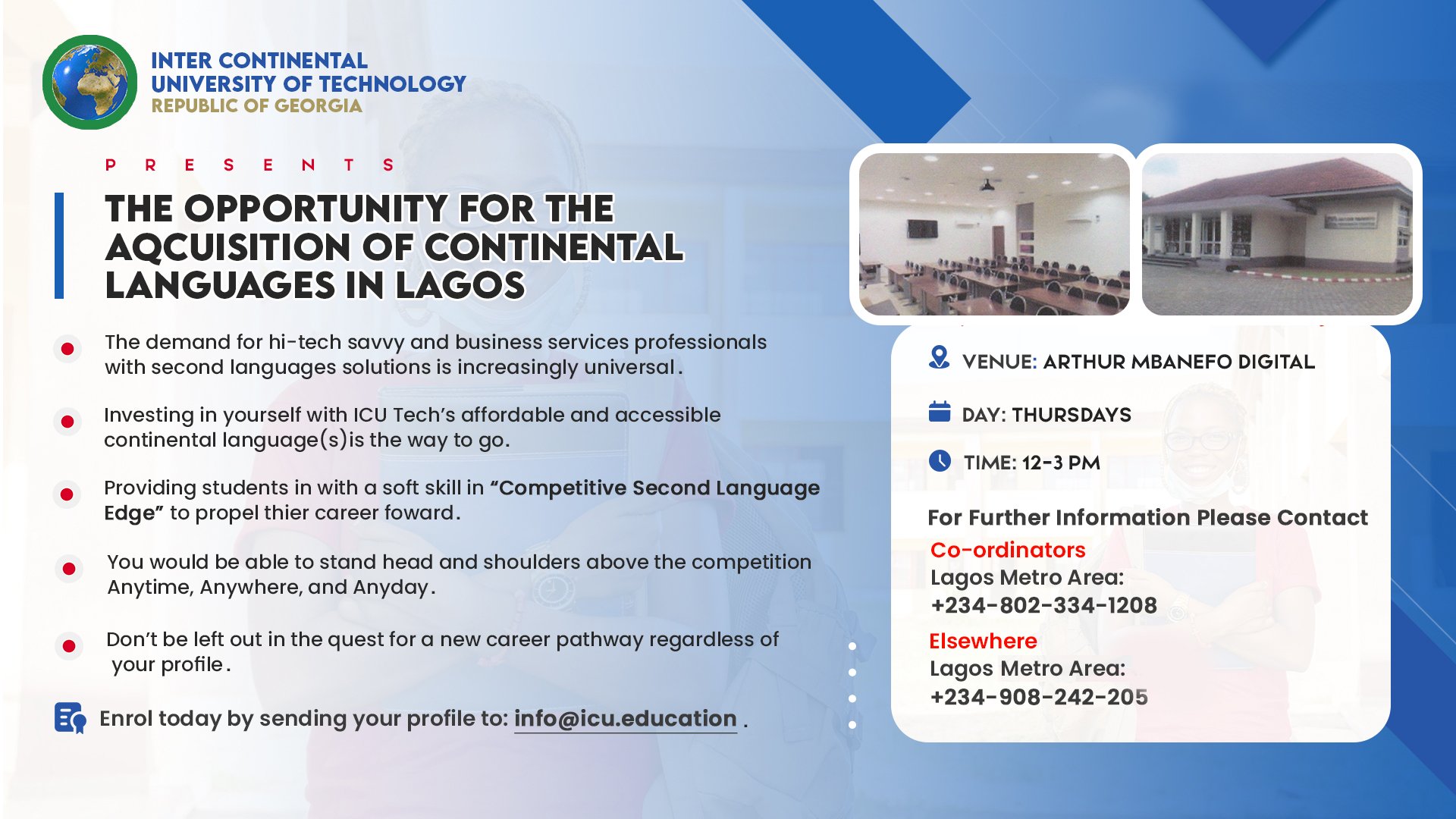The School is prepared to help with special student visas for potential interested candidates of the University. Direct from Tbilisi, Republic of Georgia!